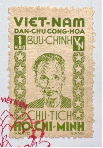 Bộ tem đầu tiên do hoạ sĩ Nguyễn Sáng thiết kế. Nguồn: tác giả chụp